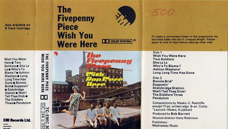 Time: 35 minutes By now Fivepenny Piece had established their house style and were churning out albums with increased confidence. This 1975 offering mixes as usual serious observations with some Lancashire humour. The title track is a sing-a-long anthem to the British seaside holiday whilst 'Stalybridge Station' became another firm favourite of the huge following the group had amassed. Producer BOB BARRATT Musical Director: Harry Robinson Recording Engineers: Peter Tattersall and Tony Clark Cassette TC-EMC 3077 ![]()